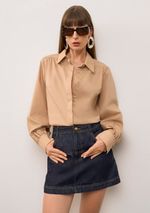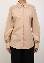 FemininoRoupasCamisasAlfaiatariaCamisa Iódice Ajustada Gola Clássica Manga Longa Padrão Bege