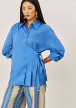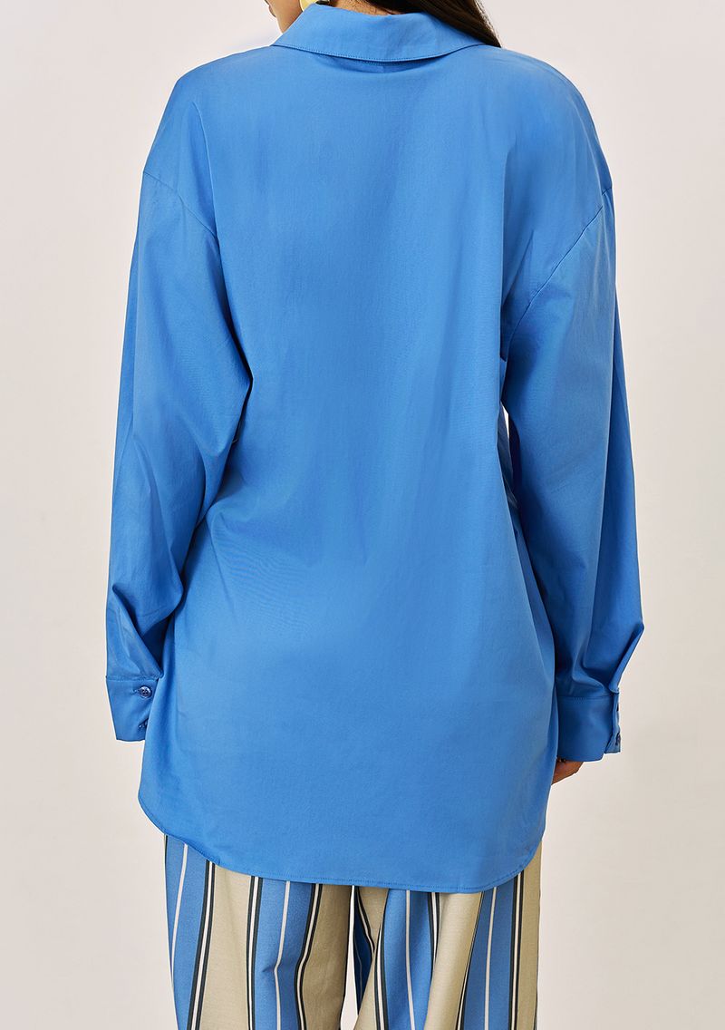 Camisa Iódice Ajustada Gola Tradicional Manga Longa Padrão Azul