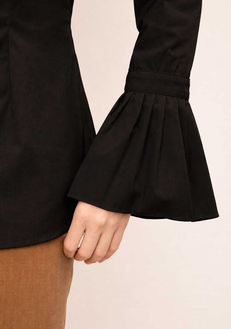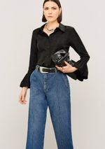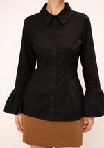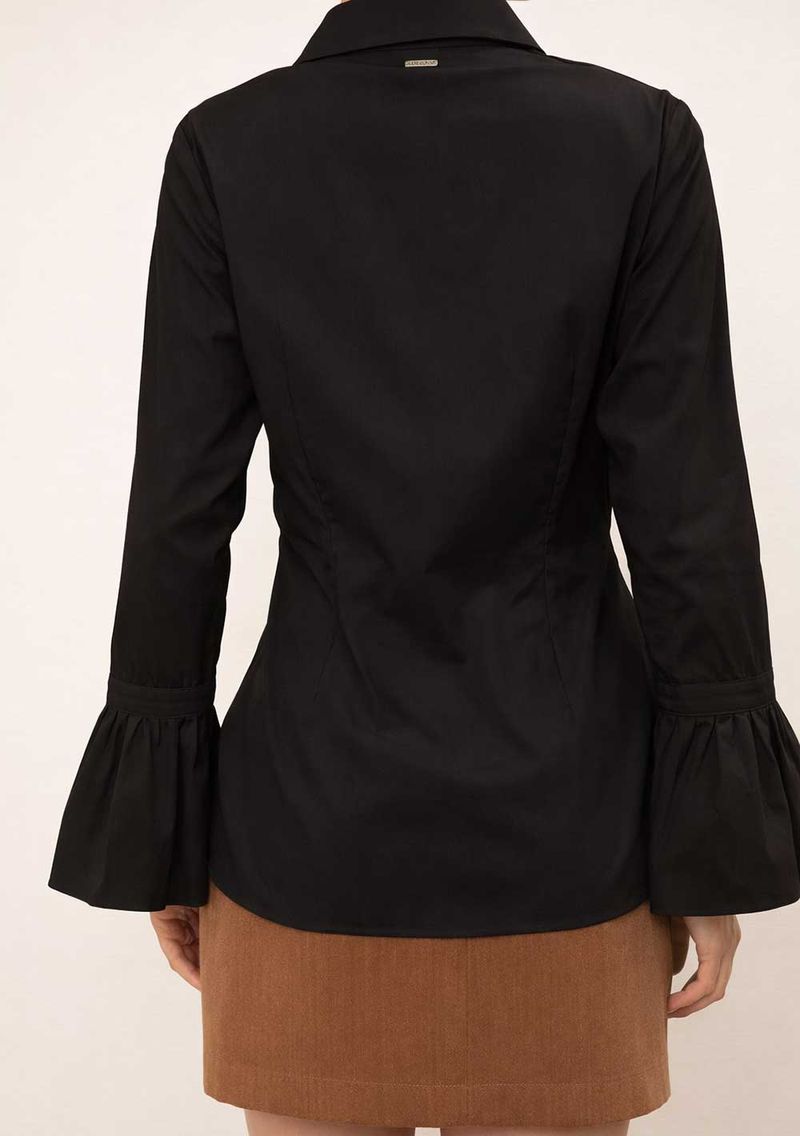 Camisa Iódice Ajustada Gola Tradicional Manga Longa Padrão Preto