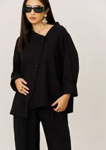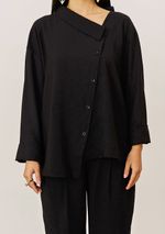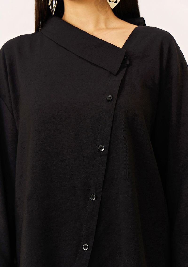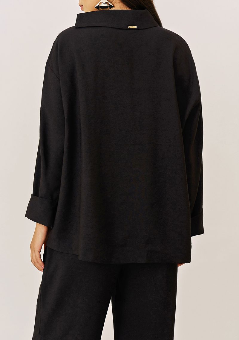 Camisa Iódice Solta Decote Canoa Manga Longa Padrão Preto