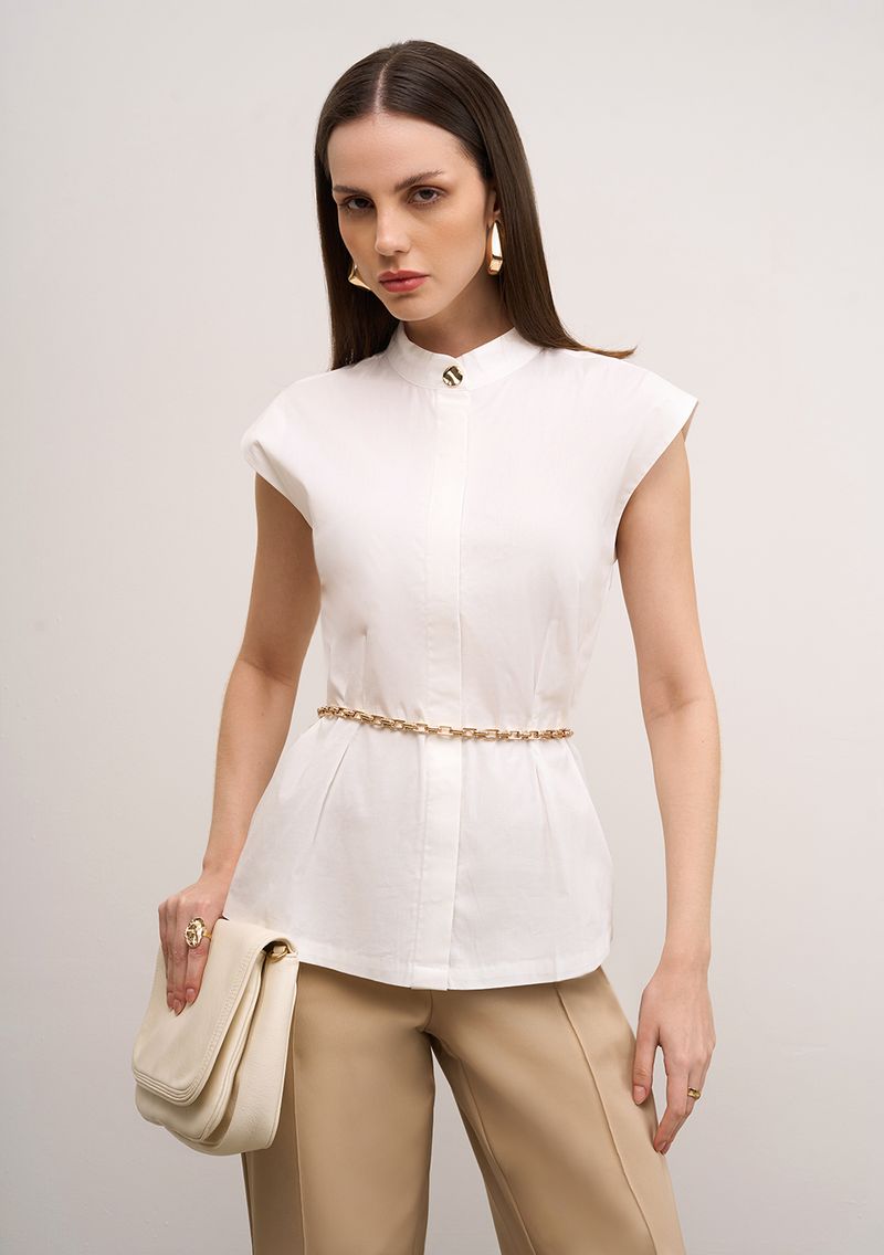 Camisa Iódice Solta Decote V Manga Curta Padrão Off White