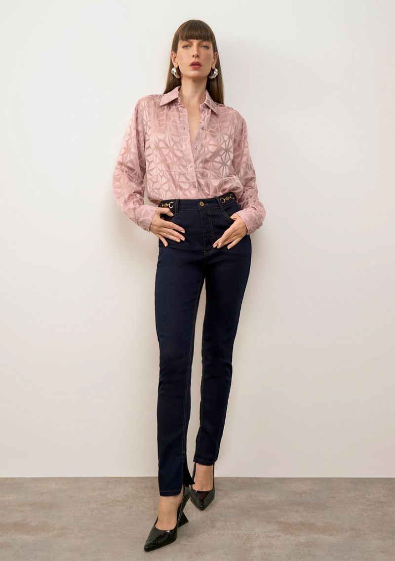 Camisa Iódice Solta Gola Clássica Manga Longa Padrão Rosa