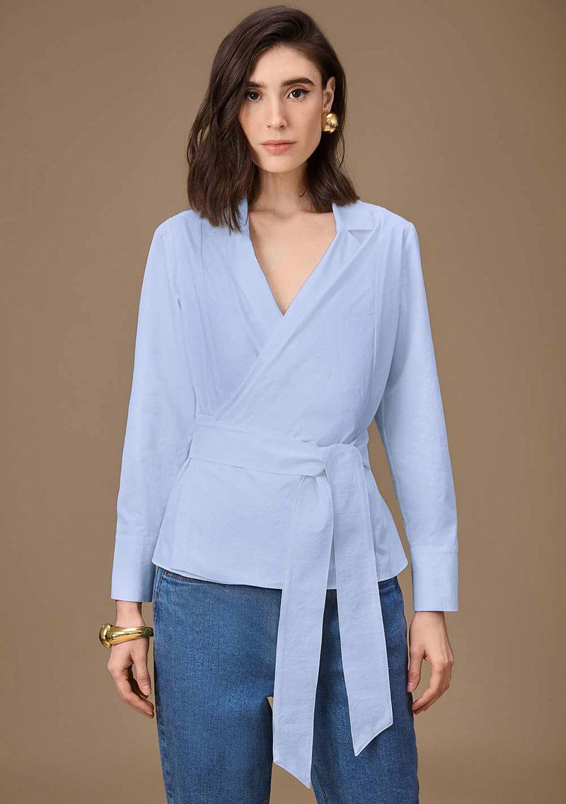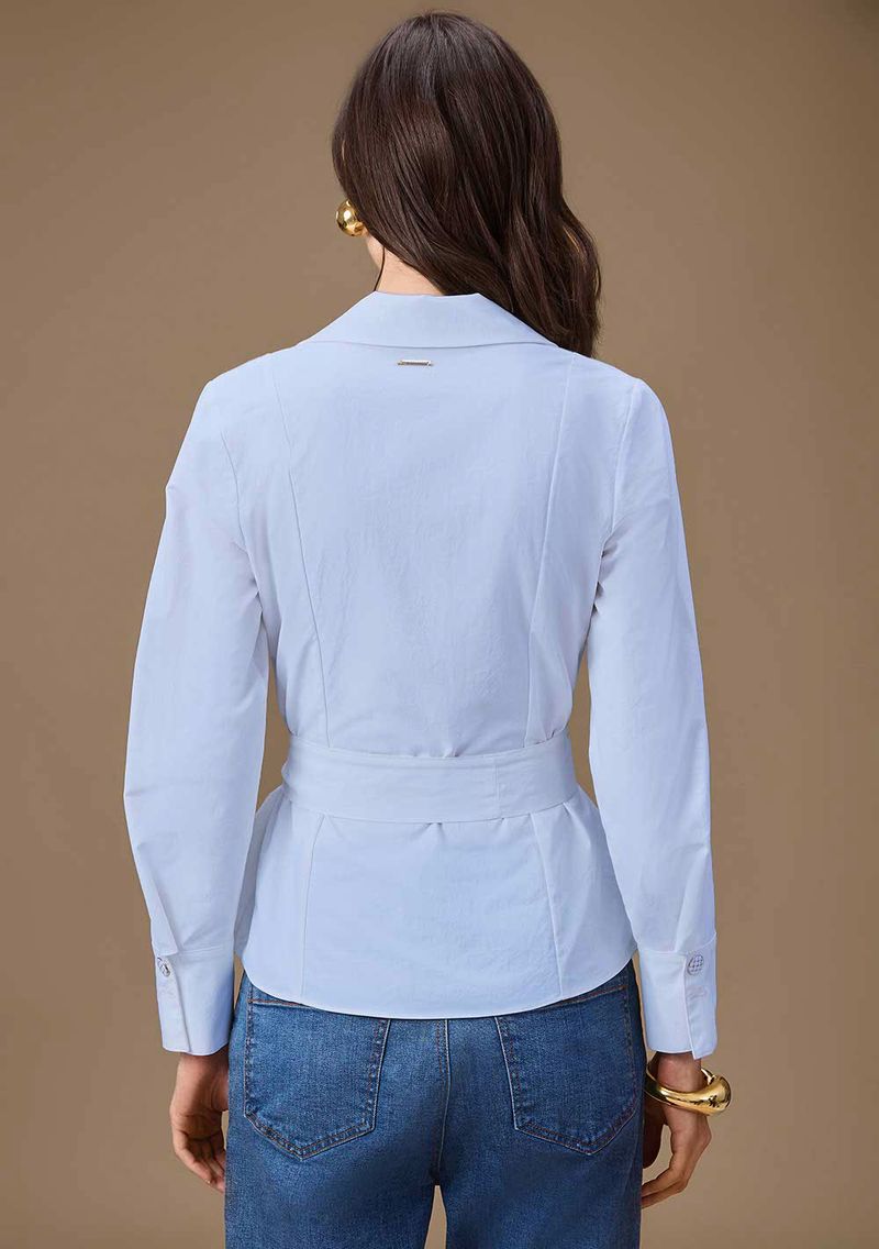 OUTLETFemininoRoupasCamisasCamisa Maria.Valentina Ajustada Decote V Manga Longa Padrão Azul