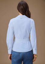 Camisa Maria.Valentina Ajustada Decote V Manga Longa Padrão Azul