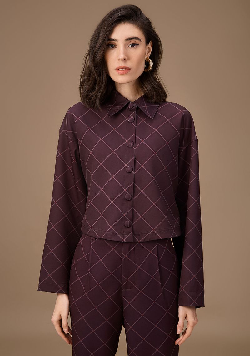 Camisa Maria.Valentina Ajustada Polo Manga Longa Padrão Marrom