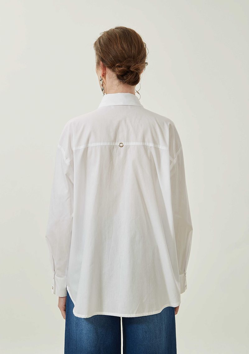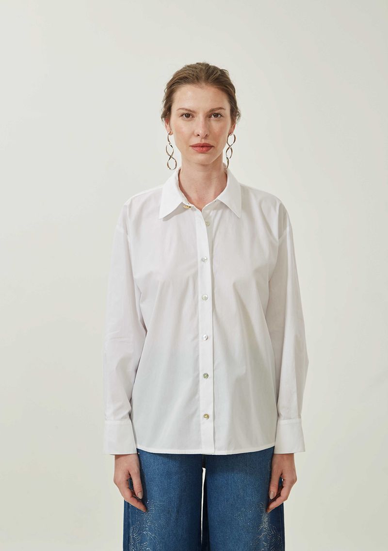 Camisa Maria.Valentina Oversized Gola Tradicional Manga Longa Padrão Branco