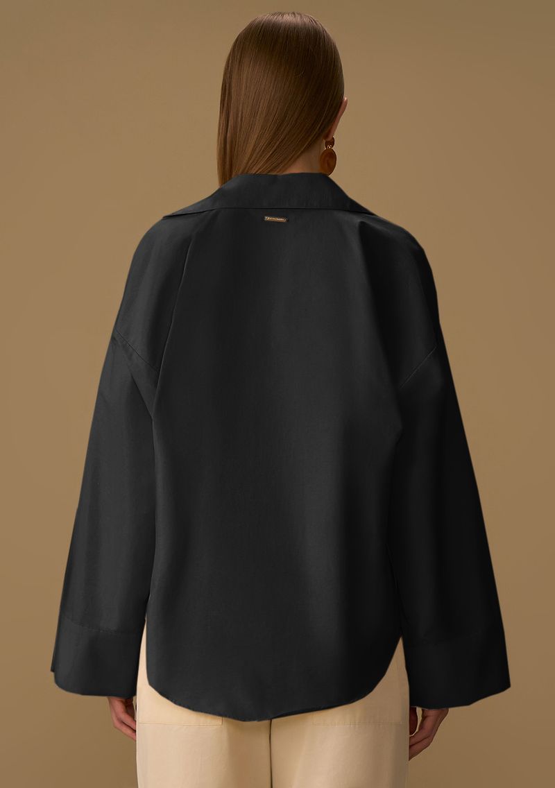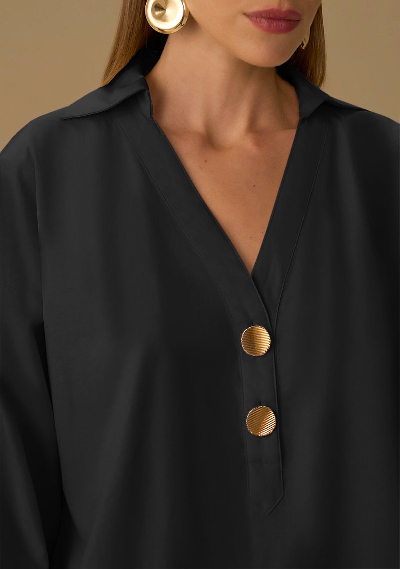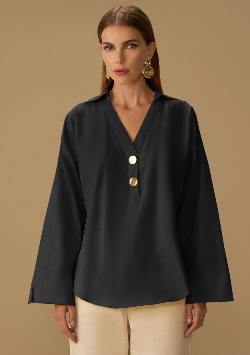 Camisa Maria.Valentina Solta Decote V Manga Longa Alongada Preto