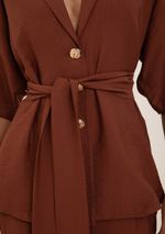 Camisa Maria.Valentina Solta Gola Clássica Manga 7 Oitavos Alongada Marrom