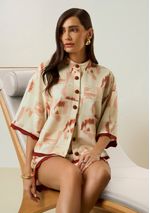 Camisa Maria.Valentina Solta Gola Padre Manga 3 Quartos Padrão Bege