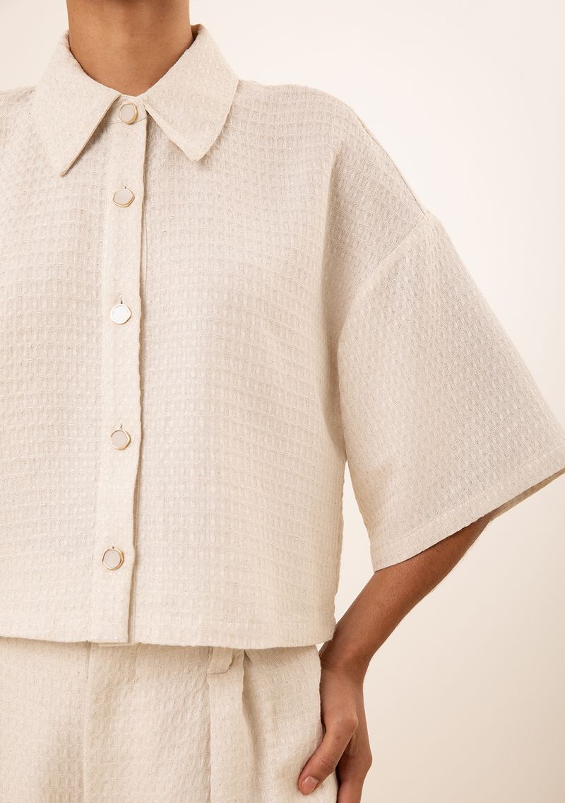 Camisa Maria.Valentina Solta Gola Tradicional Manga Curta Cropped Off White