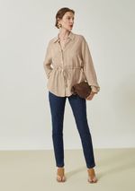 Camisa Maria.Valentina Solta Gola Tradicional Manga Longa Alongada Bege
