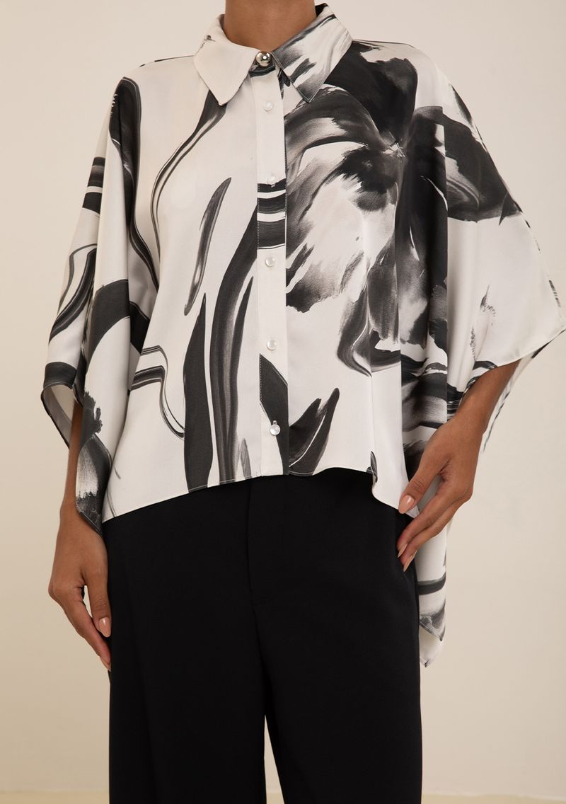 Camisa Maria.Valentina Solta Gola Tradicional Manga Longa Padrão Preto