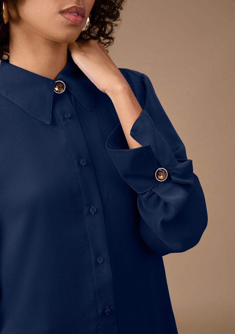 OUTLETFemininoRoupasCamisasCamisa Maria.Valentina Solta Polo Manga Longa Padrão Azul Escuro
