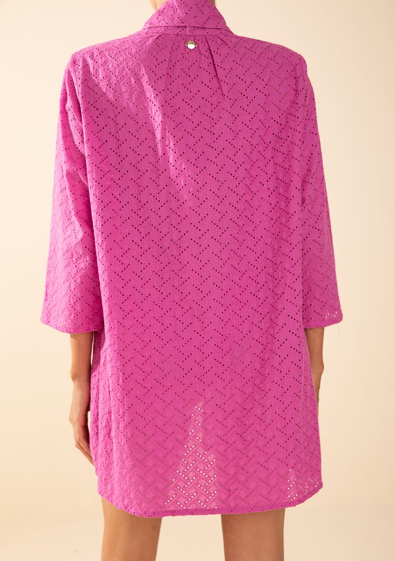 Camisa Morena Rosa Solta Decote V Manga 3 Quartos Alongada Rosa