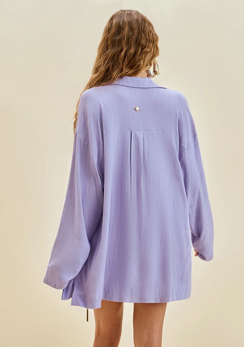 Camisa Morena Rosa Solta Gola Clássica Manga Longa Alongada Roxo