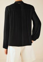 Camisa Morena Rosa Solta Gola Padre Manga Longa Padrão Preto
