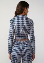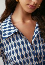 Camisa Zinco Ajustada Decote V Manga Longa Cropped Azul