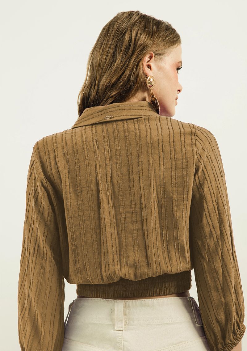 Camisa Zinco Manga Longa Com Transpasse Marrom