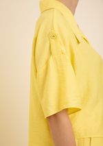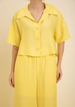 Camisa Zinco Solta Decote V Manga Curta Cropped Amarelo