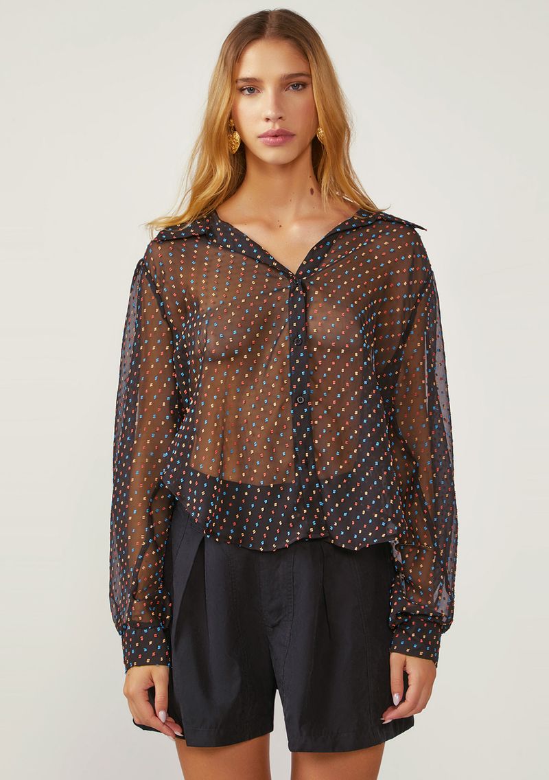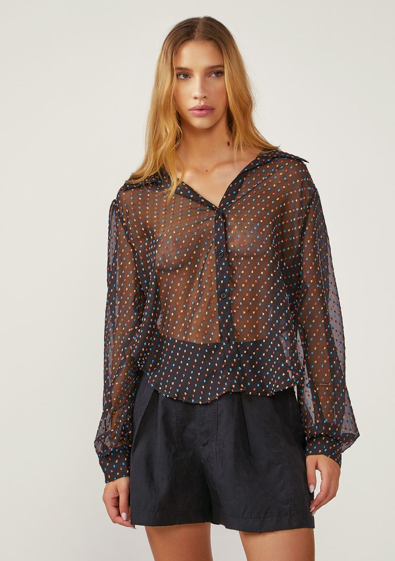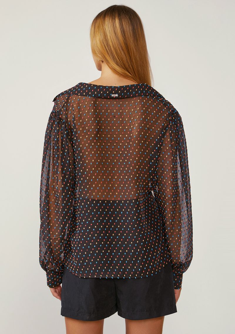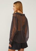 Camisa Zinco Solta Decote V Manga Longa Padrão Preto