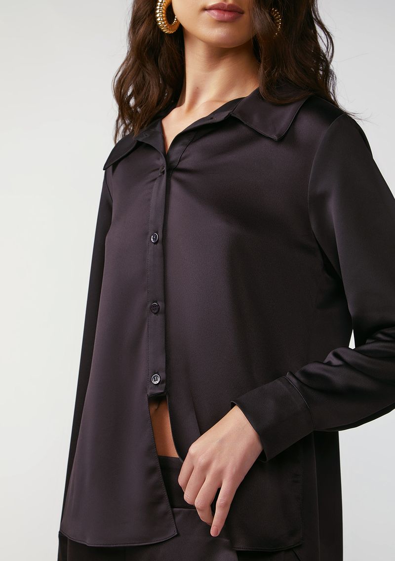 Camisa Zinco Solta Gola Clássica Manga Longa Padrão Preto