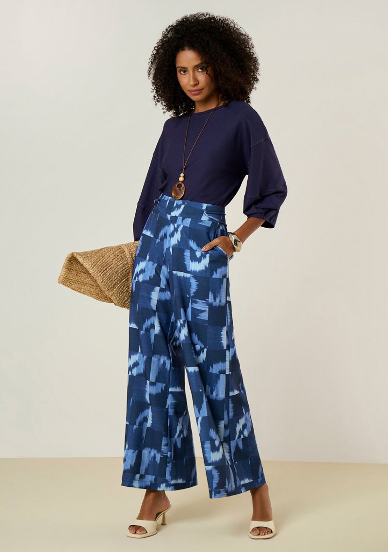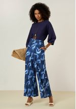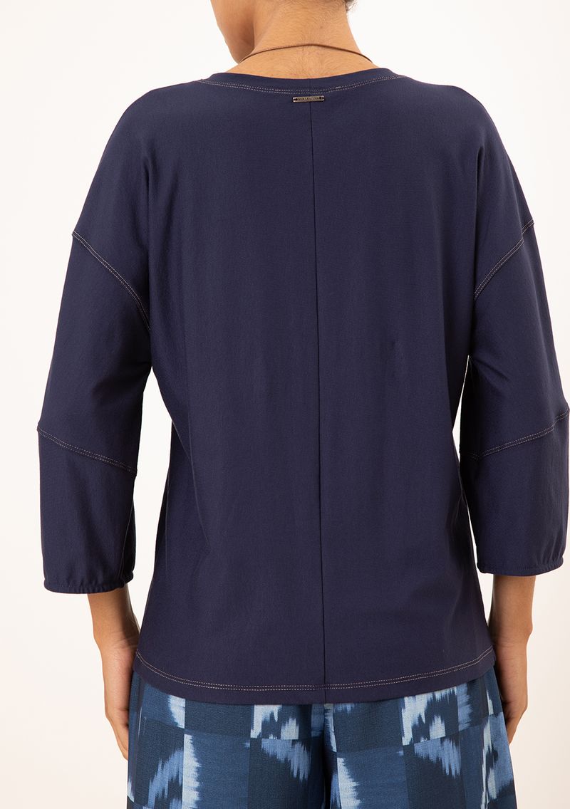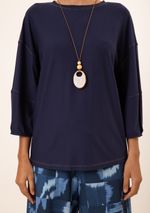 FemininoRoupasT-shirtsCamiseta Maria.Valentina Solta Decote Careca Manga 3 Quartos Padrão Azul Escuro