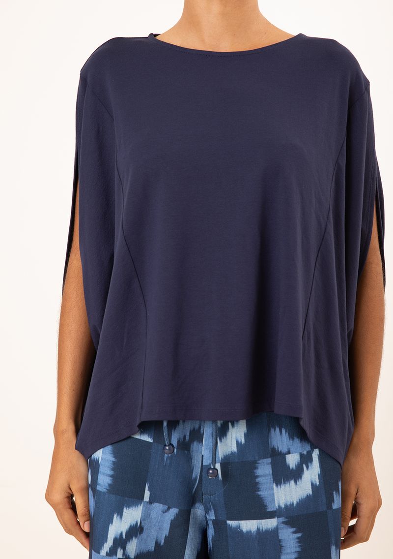 Camiseta Maria.Valentina Solta Decote Careca Manga Curta Padrão Azul Escuro
