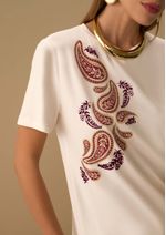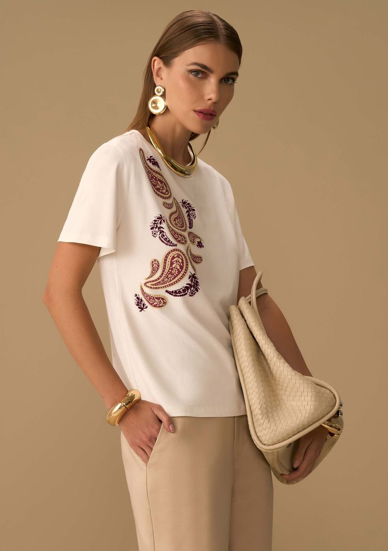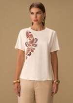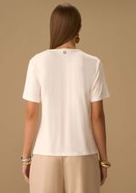 Camiseta Maria.Valentina Solta Decote Careca Manga Curta Padrão Off White