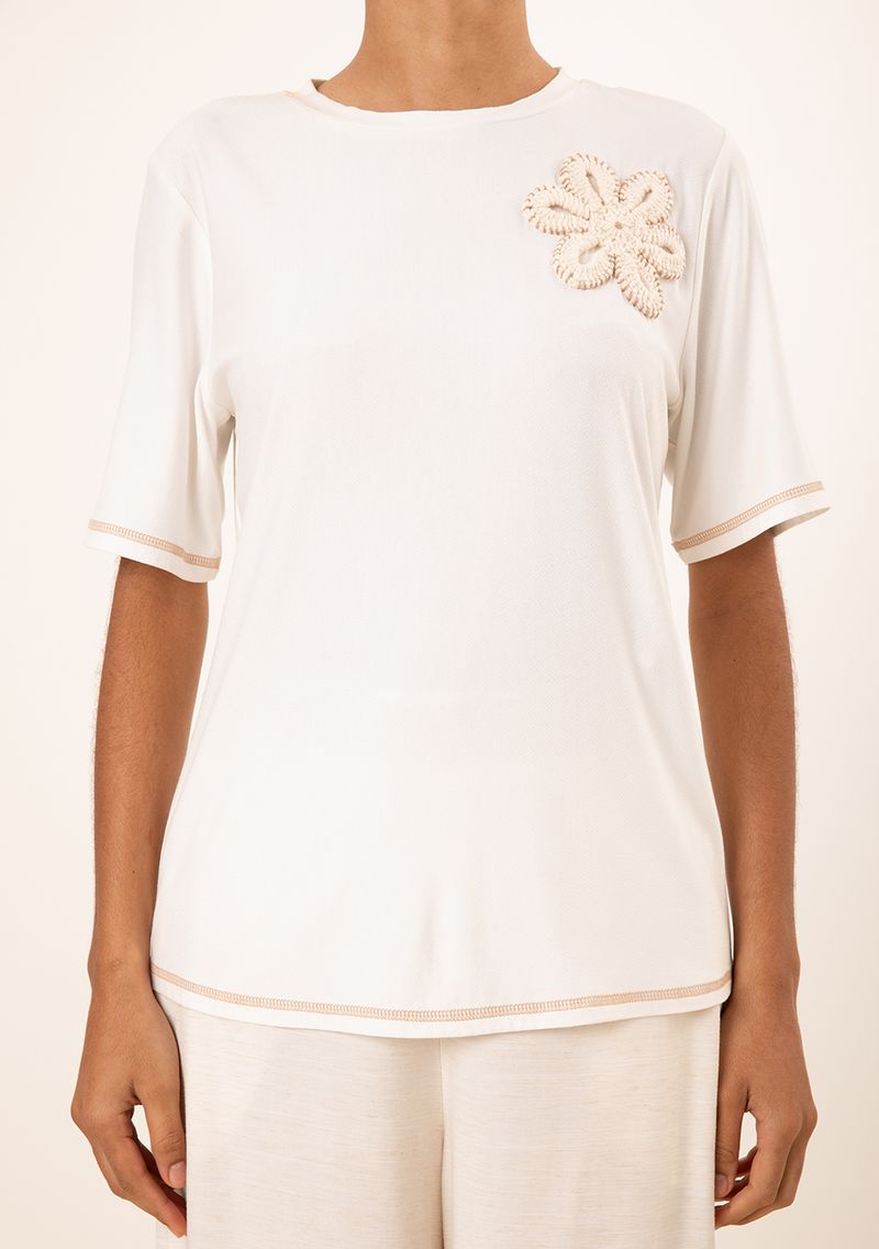 Camiseta Maria.Valentina Solta Decote Careca Manga Curta Padrão Off White