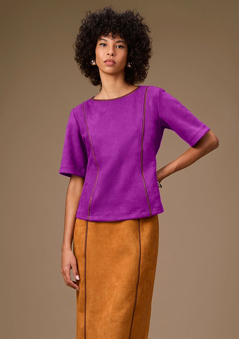 OUTLETFemininoRoupasT-shirtsCamiseta Maria.Valentina Solta Decote Careca Manga Curta Padrão Roxo
