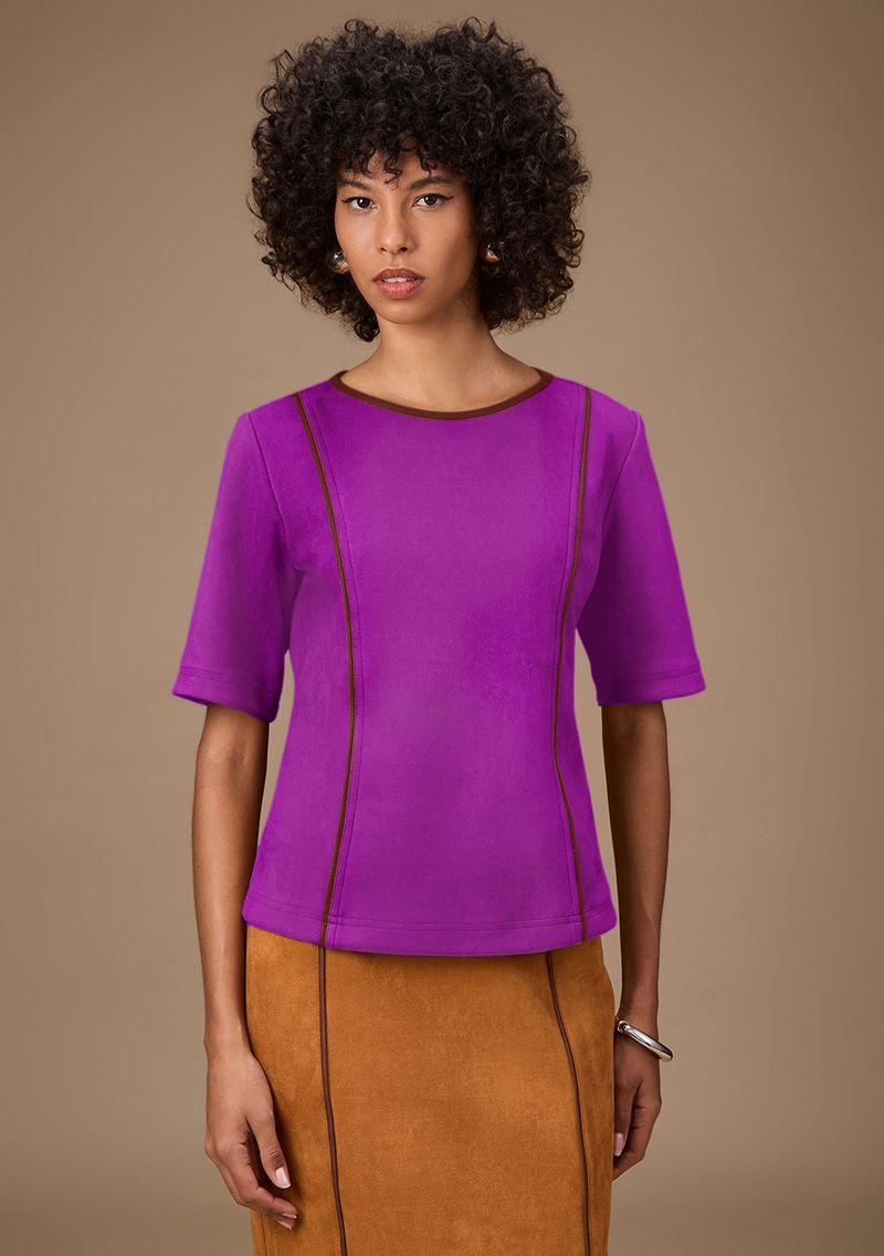Camiseta Maria.Valentina Solta Decote Careca Manga Curta Padrão Roxo