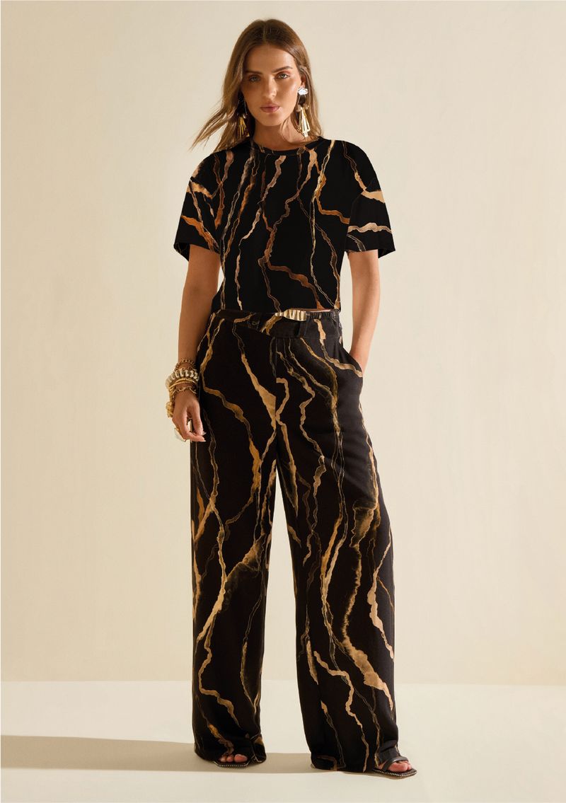 Camiseta Morena Rosa Solta Decote Careca Manga Curta Padrão Preto