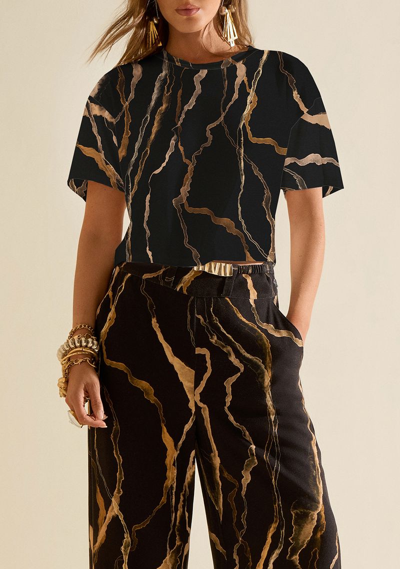 FemininoRoupasT-shirtsCamiseta Morena Rosa Solta Decote Careca Manga Curta Padrão Preto