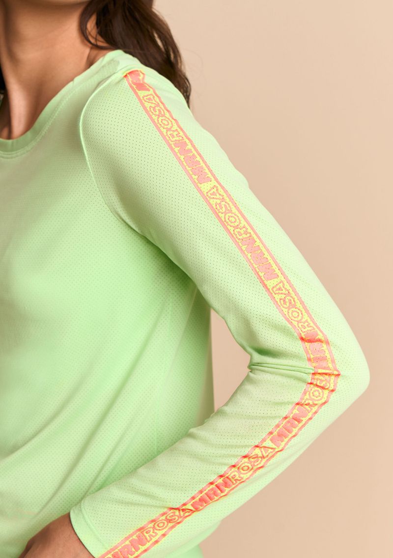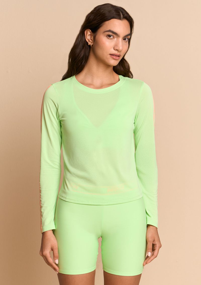 Camiseta Morena Rosa Solta Decote Careca Manga Longa Padrão Verde