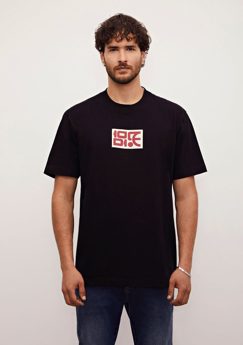 MasculinoCamisetasCamiseta Oversized Decote Careca Manga Curta Padrão Preto