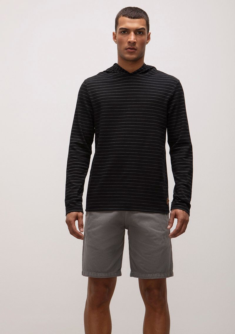 Camiseta Reta Capuz Manga Longa Listras Texturizada Preto