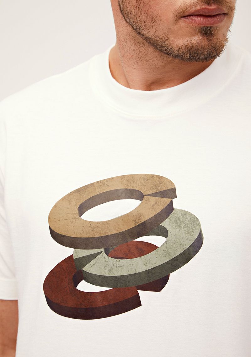 Camiseta Solta Decote Careca Manga Curta Padrão Off White
