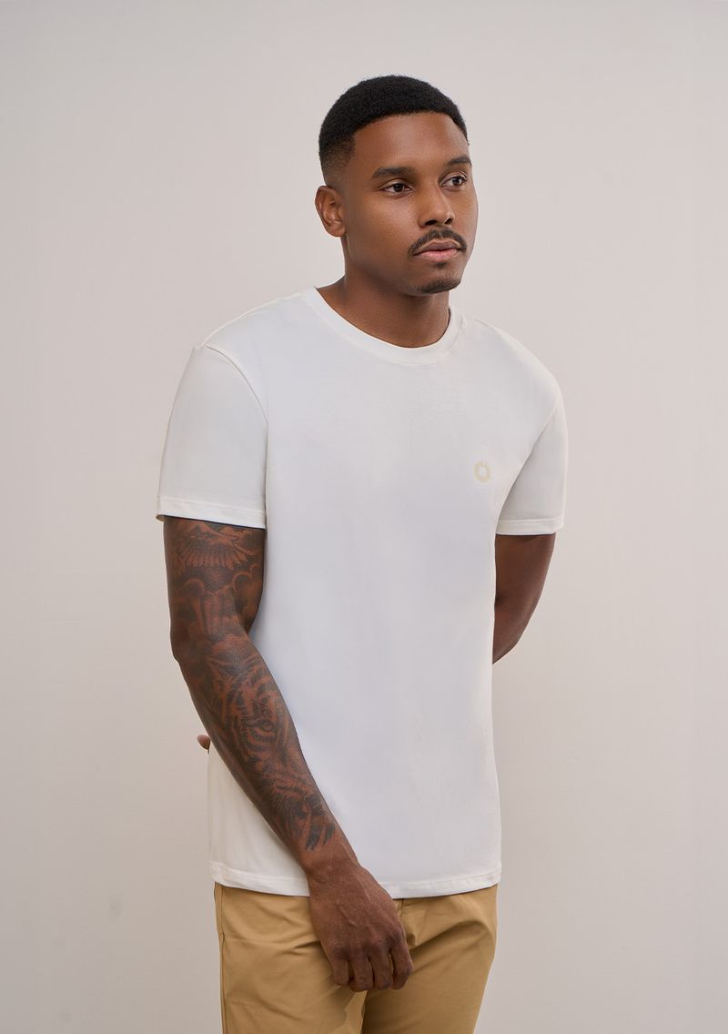 Camiseta Solta Decote Careca Manga Curta Padrão Off White