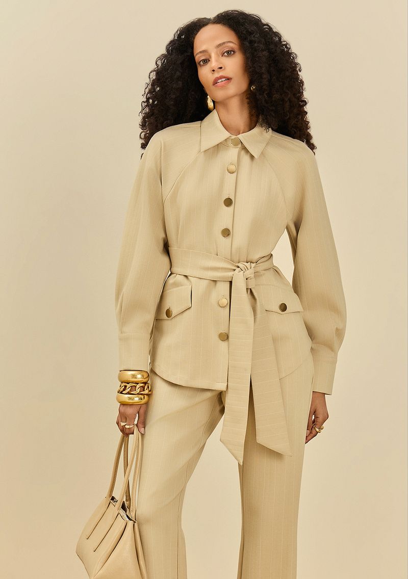 Casaco Maria.Valentina Ajustado Manga Longa Padrão Bege