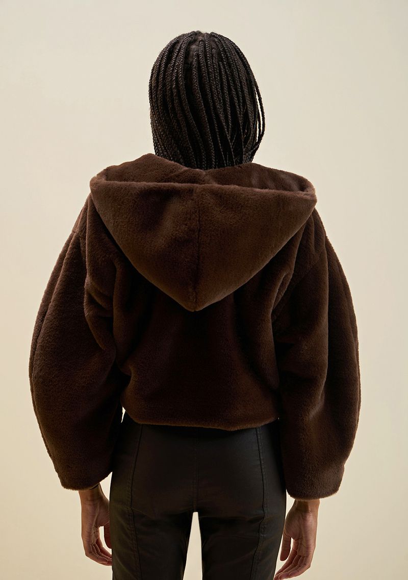 Casaco Morena Rosa Solto Manga Longa Padrão Marrom
