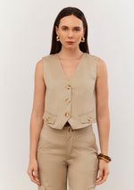 Colete Iódice Curto Com Bolsos Bege