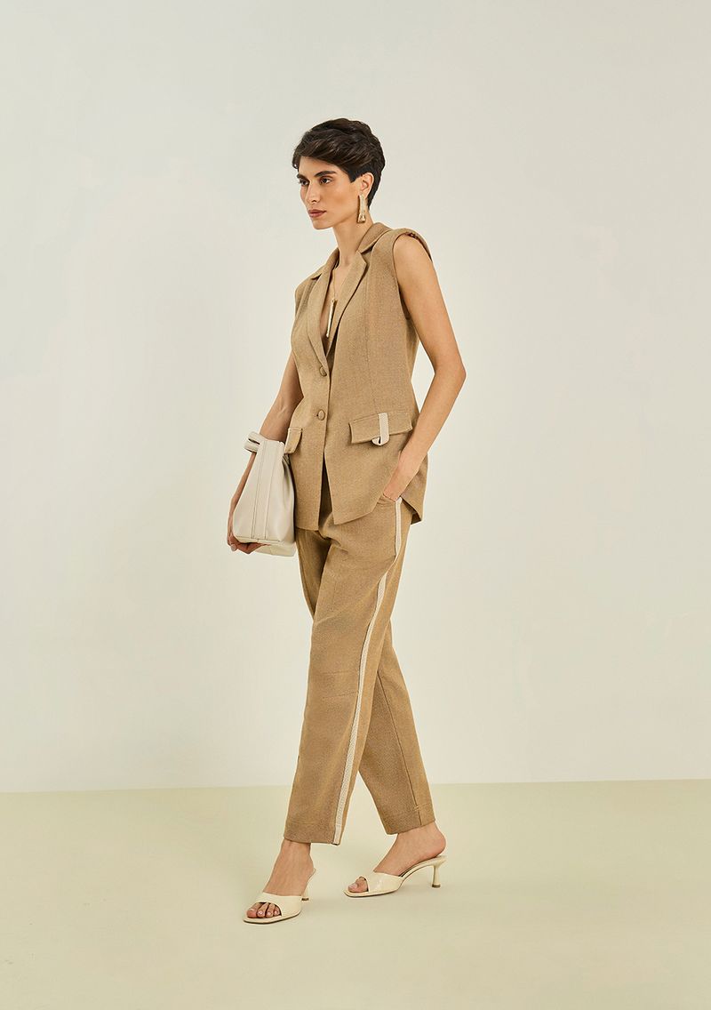 Colete Maria.Valentina Ajustado Sem Manga Padrão Bege