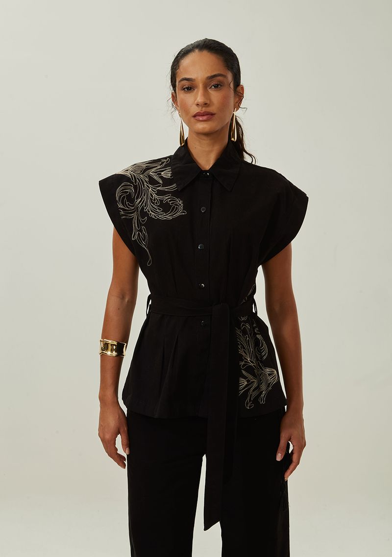 Colete Maria.Valentina Solto Sem Manga Padrão Preto