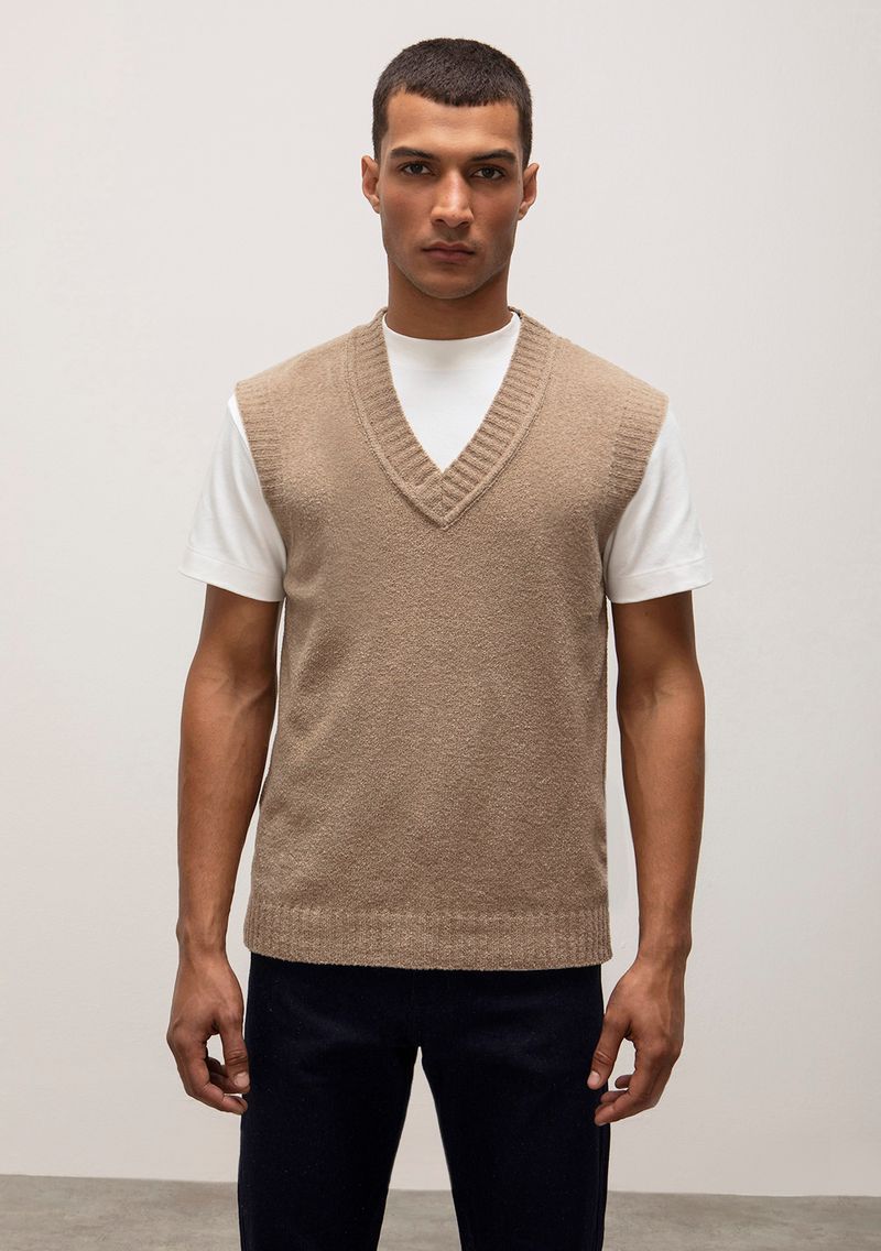 Colete Médio Tricô Bege