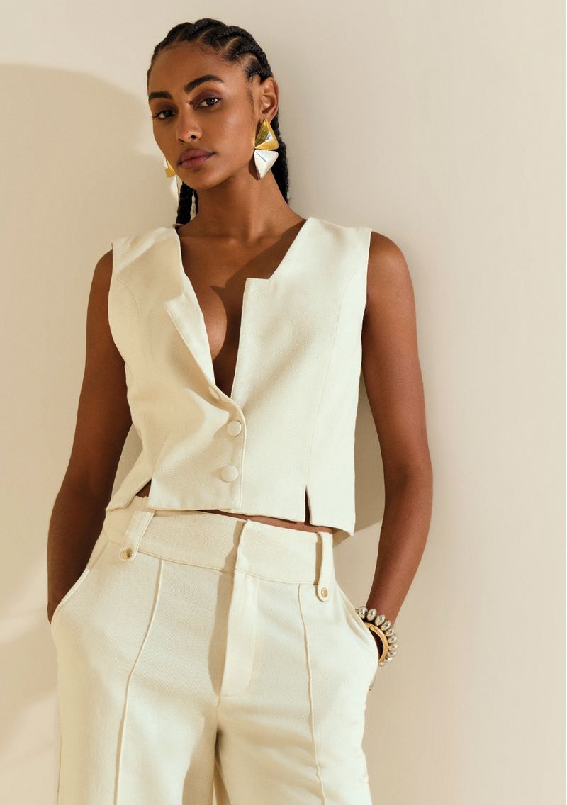 Colete Morena Rosa Ajustado Manga Longa Padrão Off White