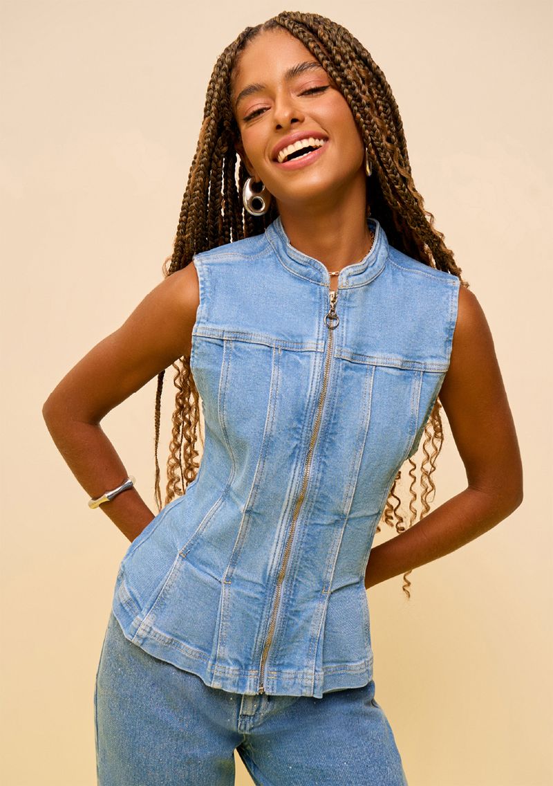 Colete Zinco Ajustado Sem Manga Padrão Azul