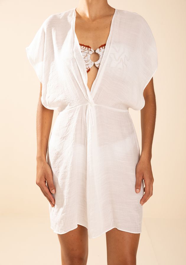Vestido Morena Rosa Solto Decote V Manga Curta Curto Off White