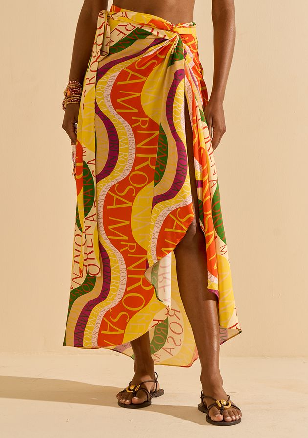 Saia Morena Rosa Evasê Alta Midi Amarelo