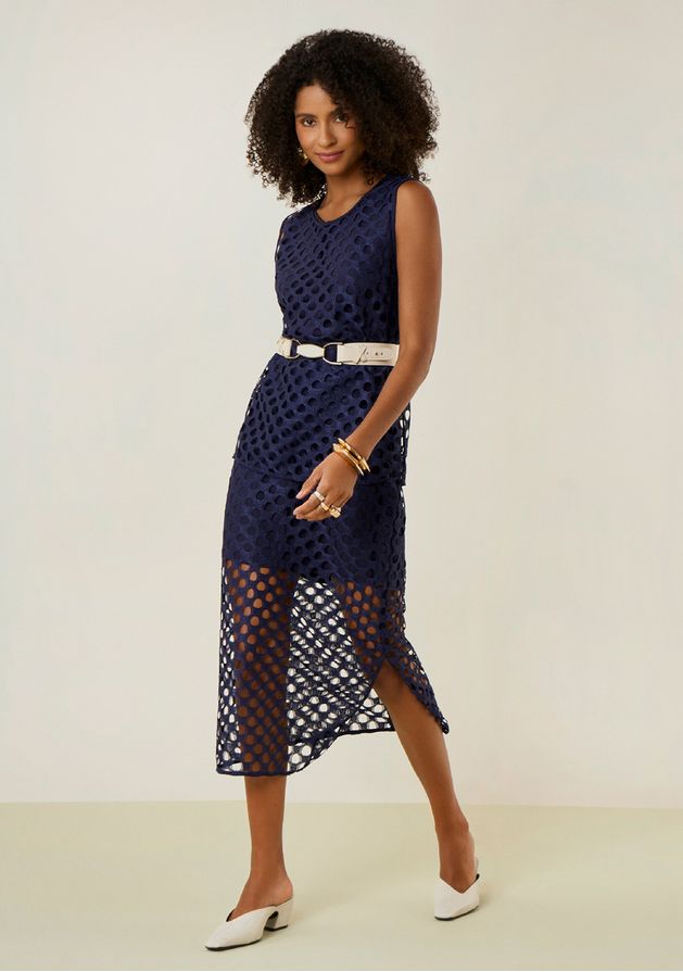Saia Maria.Valentina Reta Alta Midi Azul Escuro