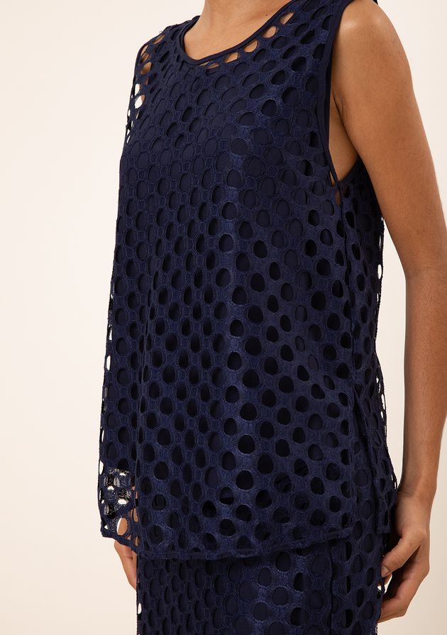 Regata Maria.Valentina Solta Decote Careca Padrão Azul Escuro